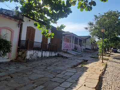 O estilo colonial está presente nas igrejas, como esta dedicada a Nosso Senhor do Bonfim, bem como nas casas antigas bem preservadas. Observem o estilo único do calçamento de pedras das ruas e a ausência de fios elétricos aéreos:
